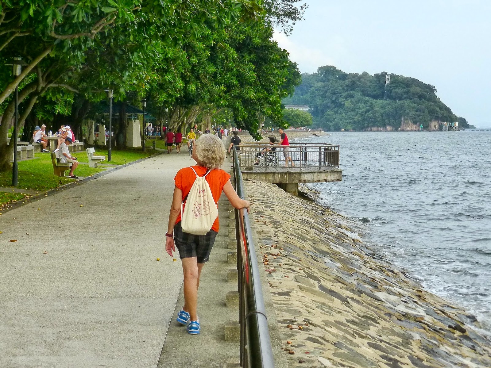 It seemed more scenic here today than when we visited a year ago, because the sky was overcast and the weather was only warm and humid, not hot and humid. The Chinese Garden was built in 1975, one year after the adjoining Japanese Garden. We traveled by bike, about an 8-mile ride each way mostly along canal-side paths that are part of the Park Connector Network. In a few places, where the PCN isn't yet in place, we rode on sidewalks.